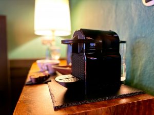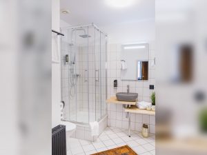 Komfort & Ausstattung:Das helle Zimmer verfügt über einen gemütlichen Sitzbereich, einen Smart-TV mit Streamingdiensten sowie eine Kaffeemaschine für deinen Lieblingskaffee am Morgen. Der hochwertige Holzboden, frische Bettwäsche und weiche Handtücher sorgen für ein angenehmes Wohlfühlambiente. Kostenloses WLAN ist selbstverständlich vorhanden.