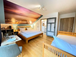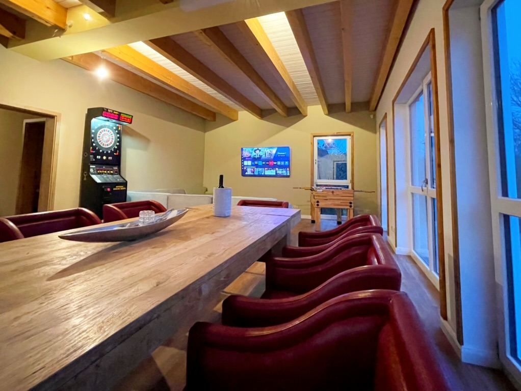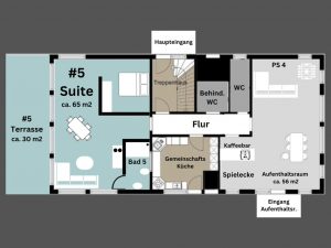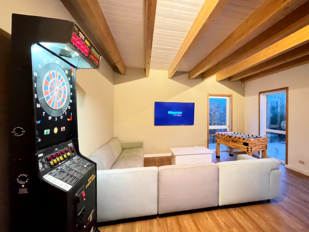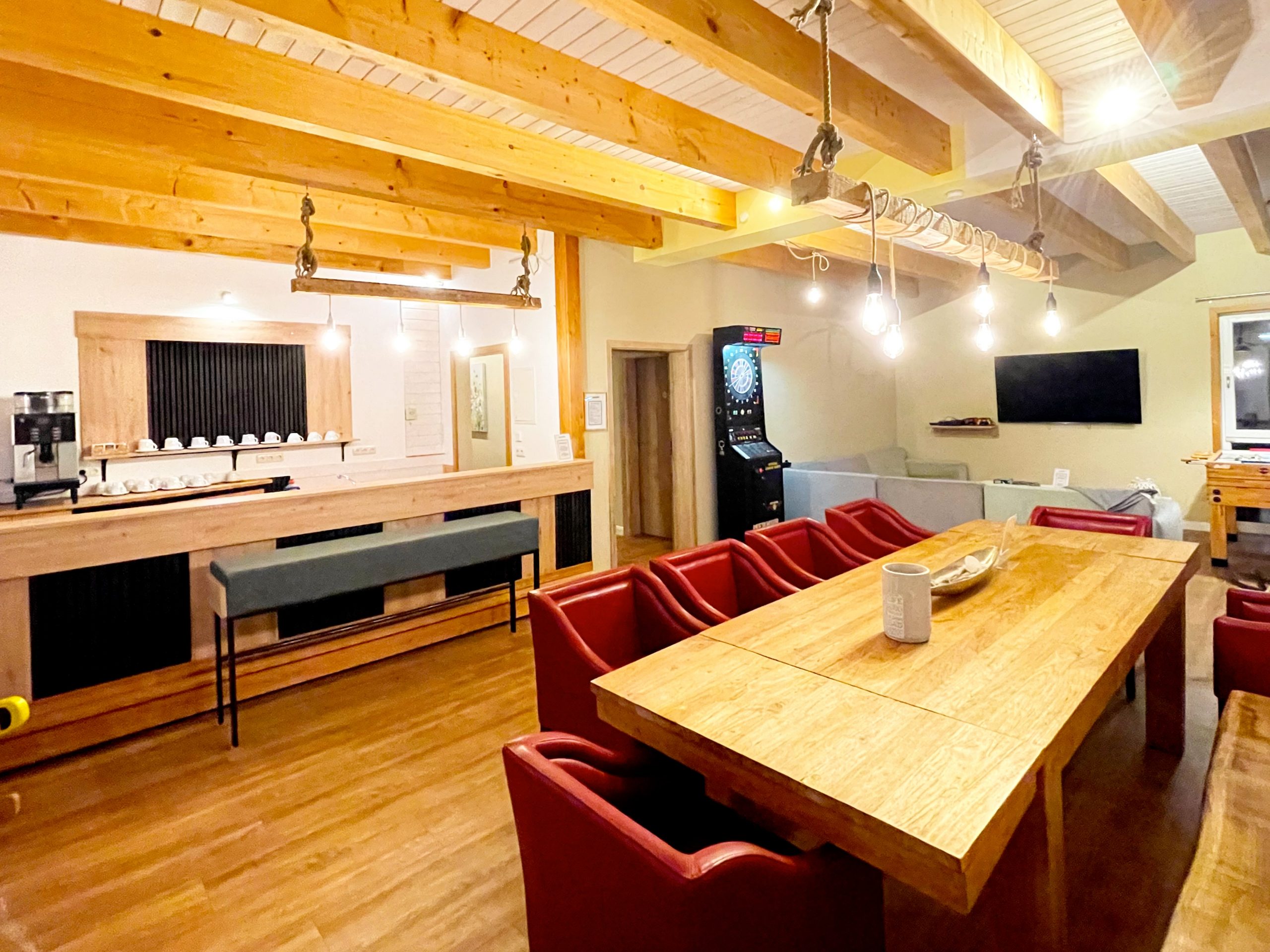 Unterhaltung & Komfort:Im großen Gemeinschaftsbereich findest du eine voll ausgestattete Küche und einen hellen Aufenthaltsraum mit Tresen. Für Spaß und Abwechslung sorgen eine PlayStation 4, ein Kicker, ein Darts-Automatund ein Smart-TV mit Streamingdiensten. Hier wird jeder Abend zum Erlebnis – ob Filmabend, Kochabend oder Spieleabend mit Freunden.
