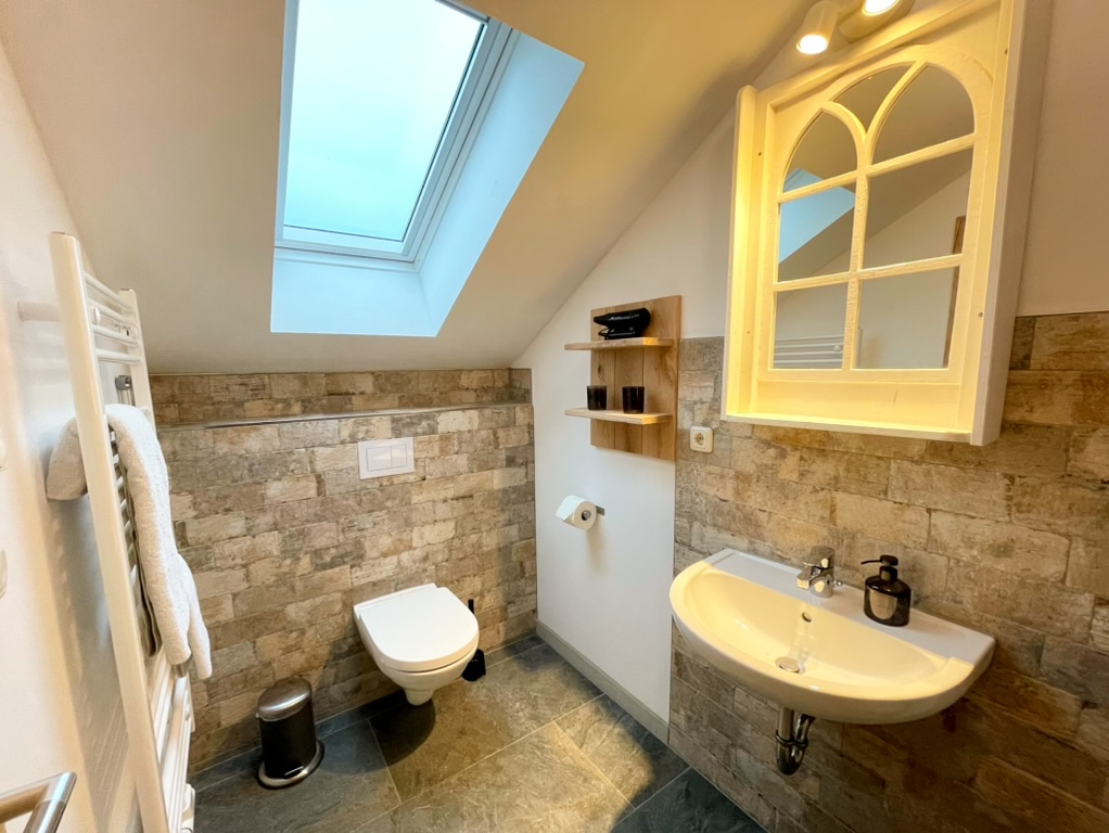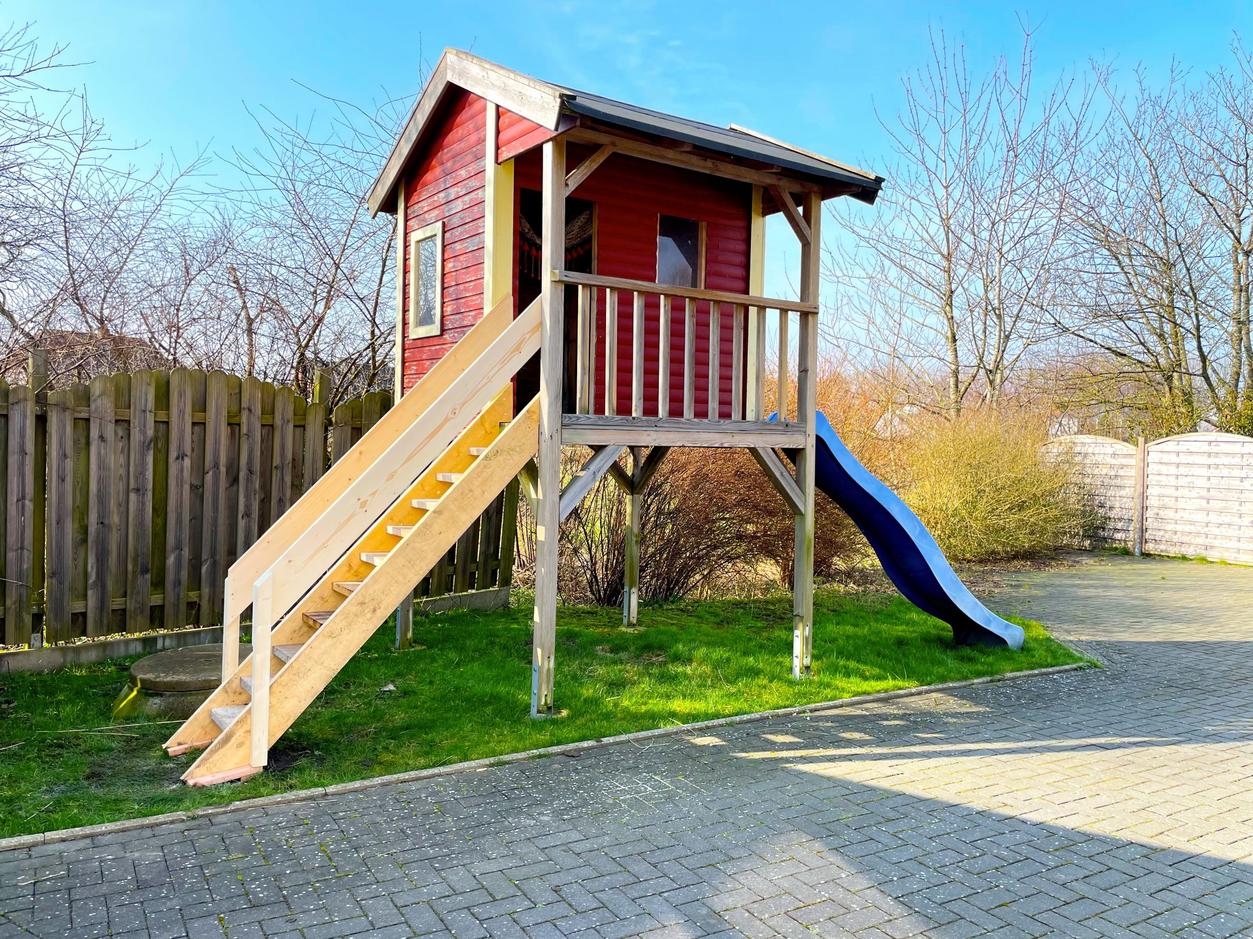 Genieße schöne Tage im Freien:Das alleinstehende Ferienhaus liegt ruhig im Grünen und verfügt über einen großen Hof mit Spielturm, eine sonnige Terrasse und kostenlose Parkplätze direkt am Haus. Alle Zimmer im Obergeschoss besitzen einen Balkon und ein eigenes Bad, die Suite im Erdgeschoss bietet zudem ein luxuriöses Badezimmer mit Regendusche und Zugang zur privaten Terrasse – perfekt für gesellige Abende im Freien.