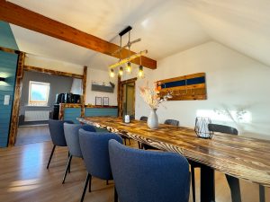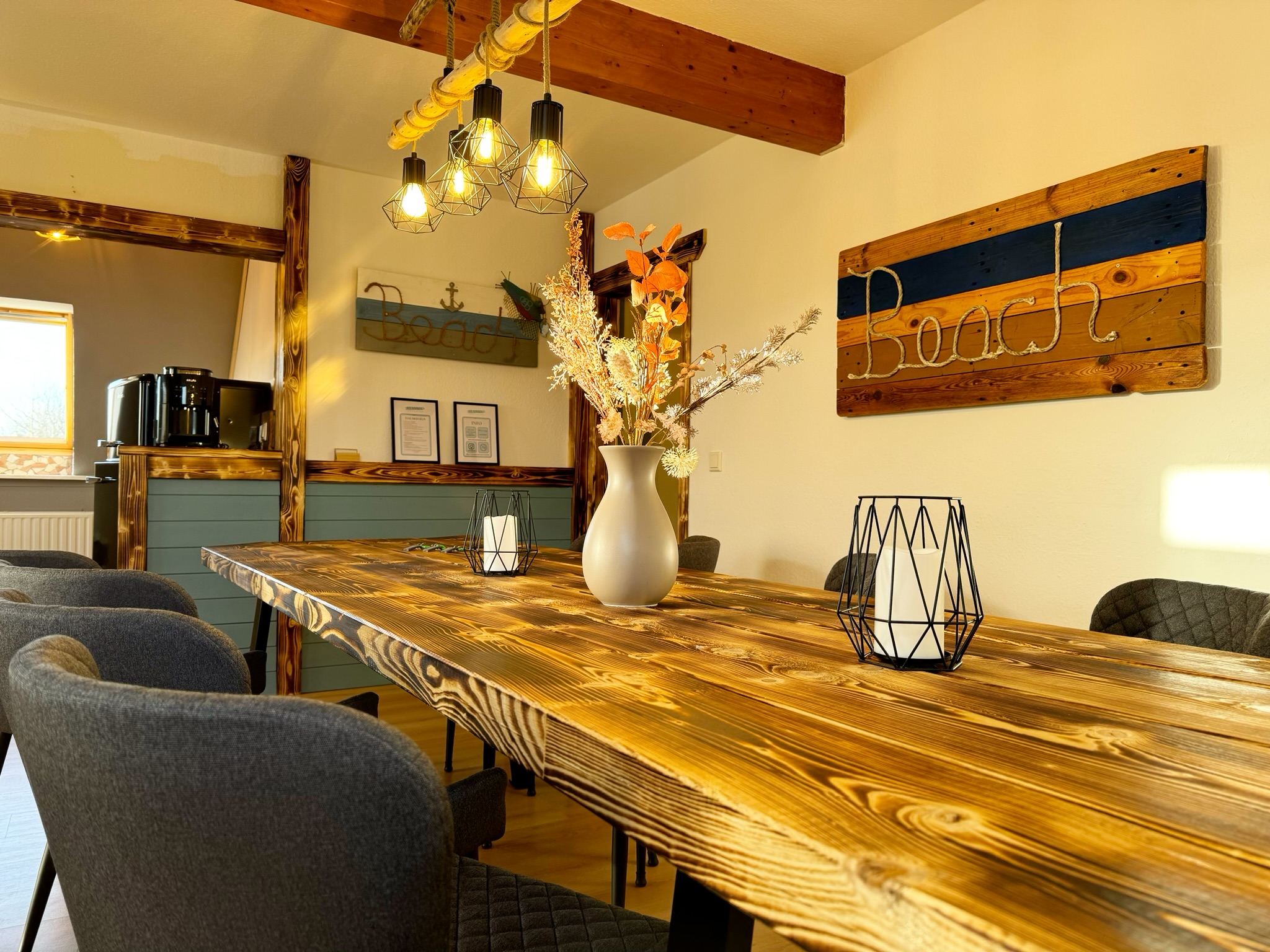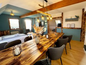 Komfort & Unterhaltung:Im großzügigen Wohn- und Essbereich findest du einen Smart-TV mit Streamingdiensten, gemütliche Sitzgelegenheiten und einen großen Esstisch für gemeinsame Abende. Die voll ausgestattete Küche bietet alles, was du brauchst: Spülmaschine, Mikrowelle, Gefrierschrank, Wasserkocher, Kaffeemaschine und alle wichtigen Kochutensilien. Kostenloses WLAN steht im gesamten Haus zur Verfügung.